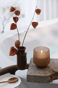 Glas LED duftlys er designet i en fin riflet glasbeholder med duftvoks. Glasbeholderen kommer i 4 forskellige farver.